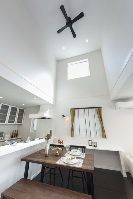 大きな吹き抜け、でも断熱対策がしっかりしているので寒くもなく暑くもないのが嬉しいね。