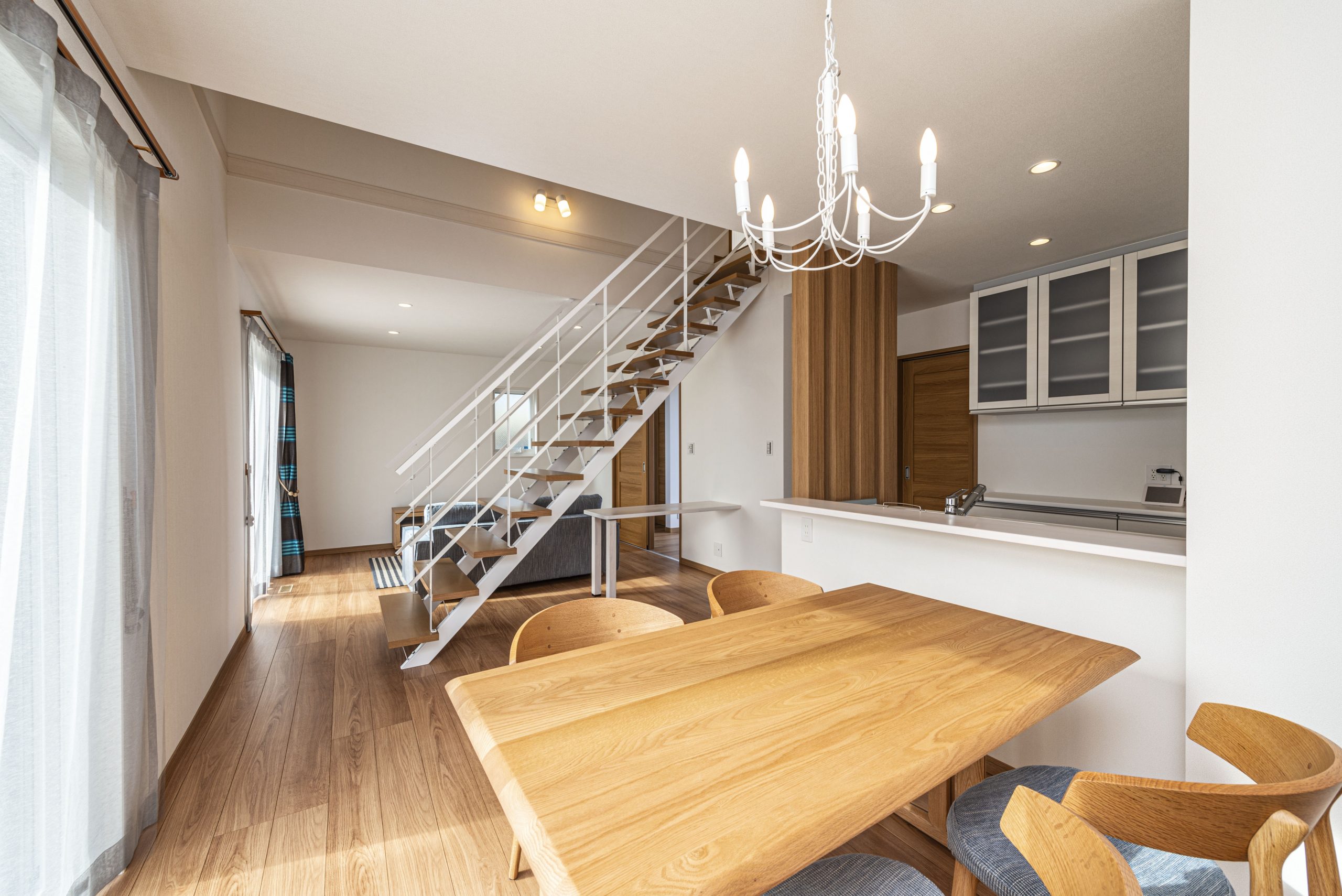 おしゃれな階段をリビングの中心に配置して家族を感じられる空間