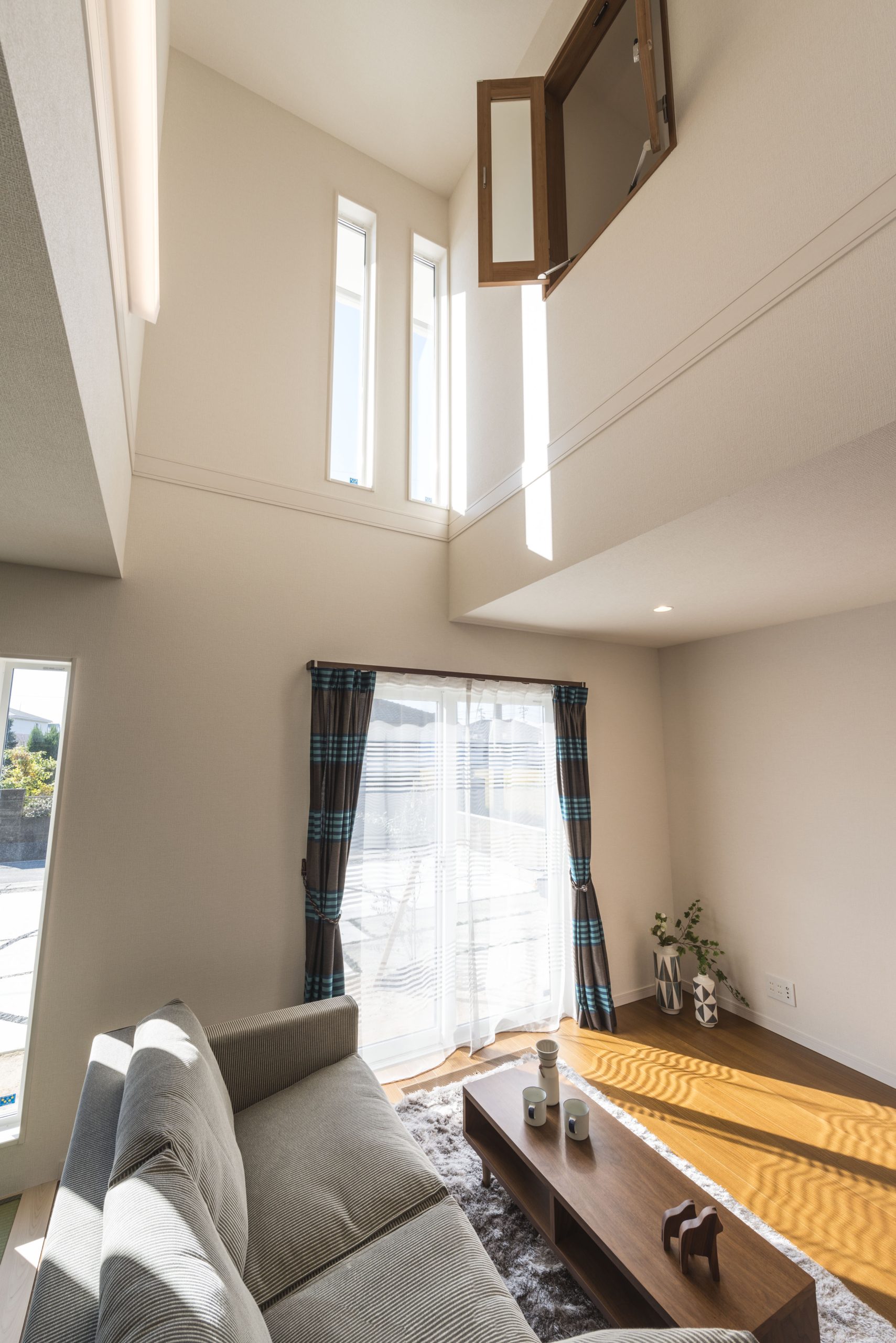 吹抜けと窓をたくさん設けた明るく開放的なLDK。