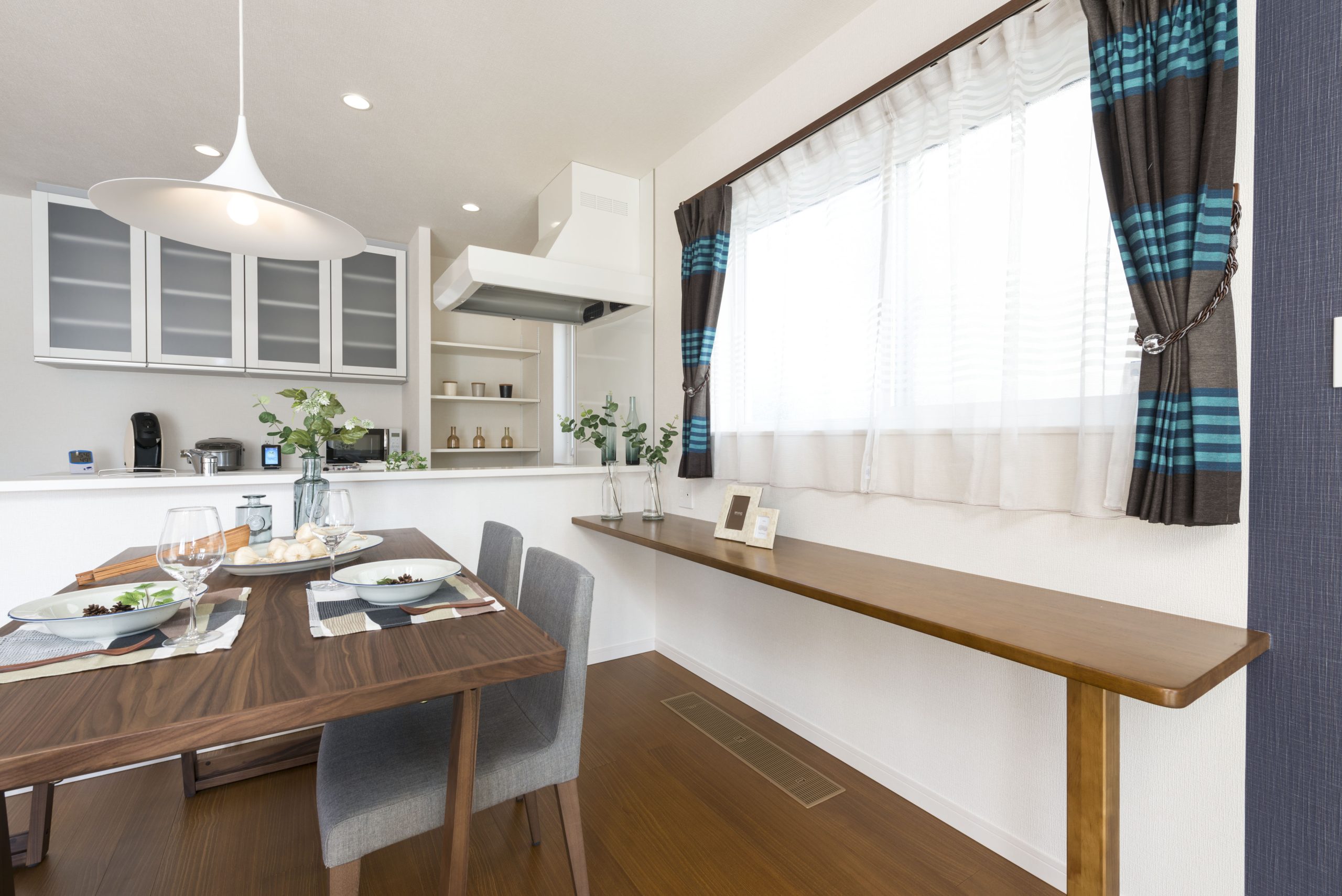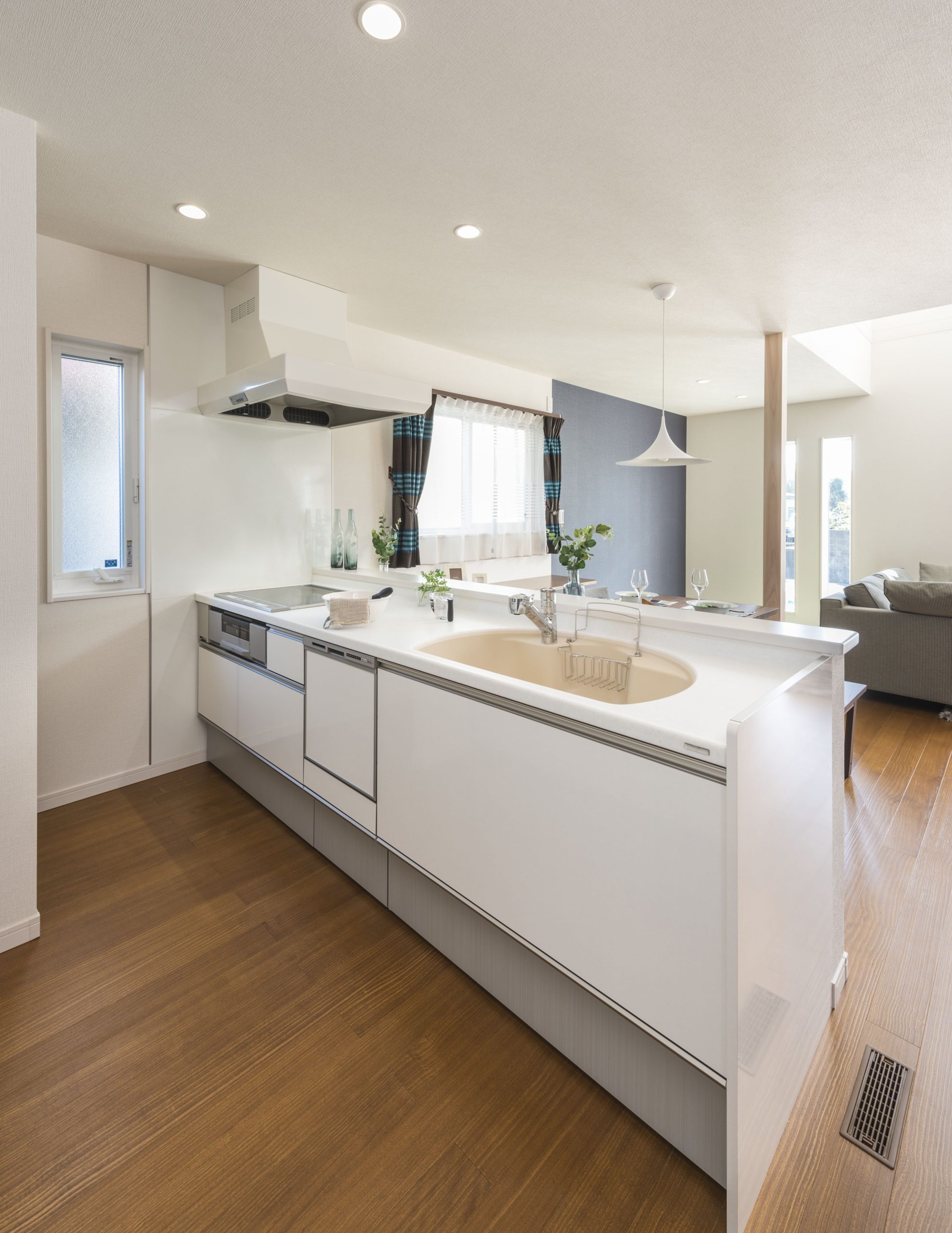 キッチンは対面式なので、料理する人と食事する人とに一体感が生まれ、会話がしやすくなります。