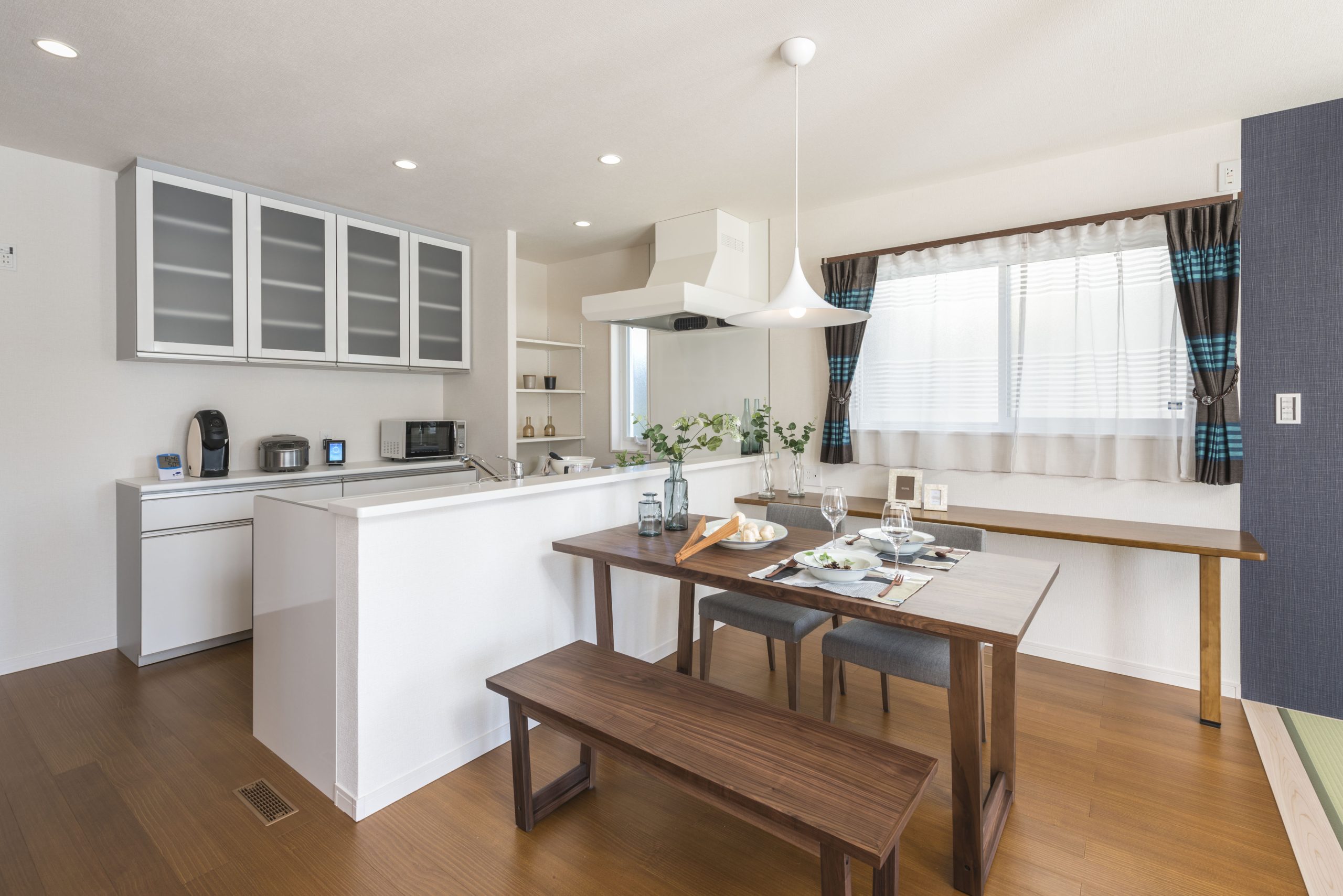 ダイニングと畳スペースはフラットに繋がっているので、大人数で集まって食事する際にも窮屈にならず、みんなで食事を楽しめます。 -