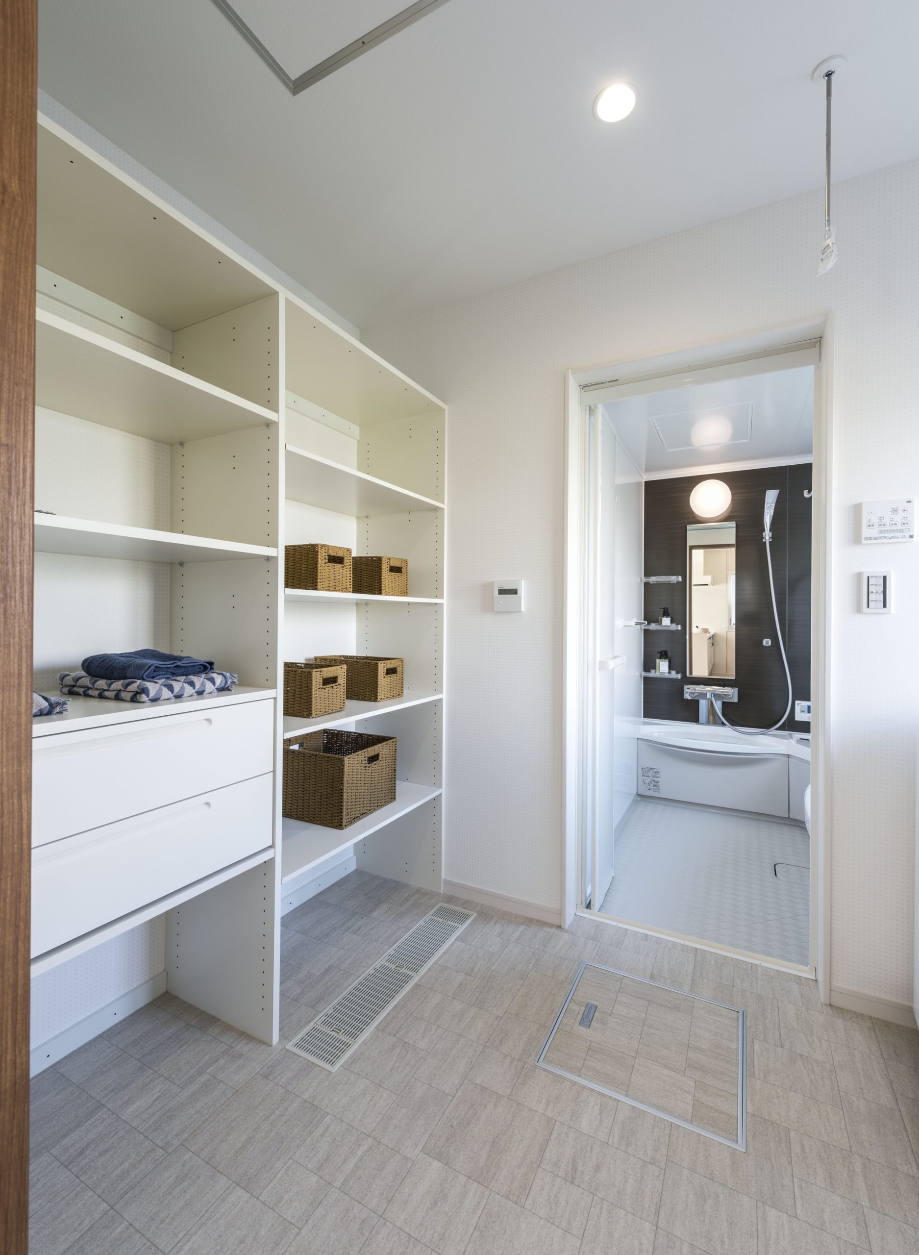 断熱性の高い住まいなので、各室内の温度差が少なく、洗面室も年中快適です。 -