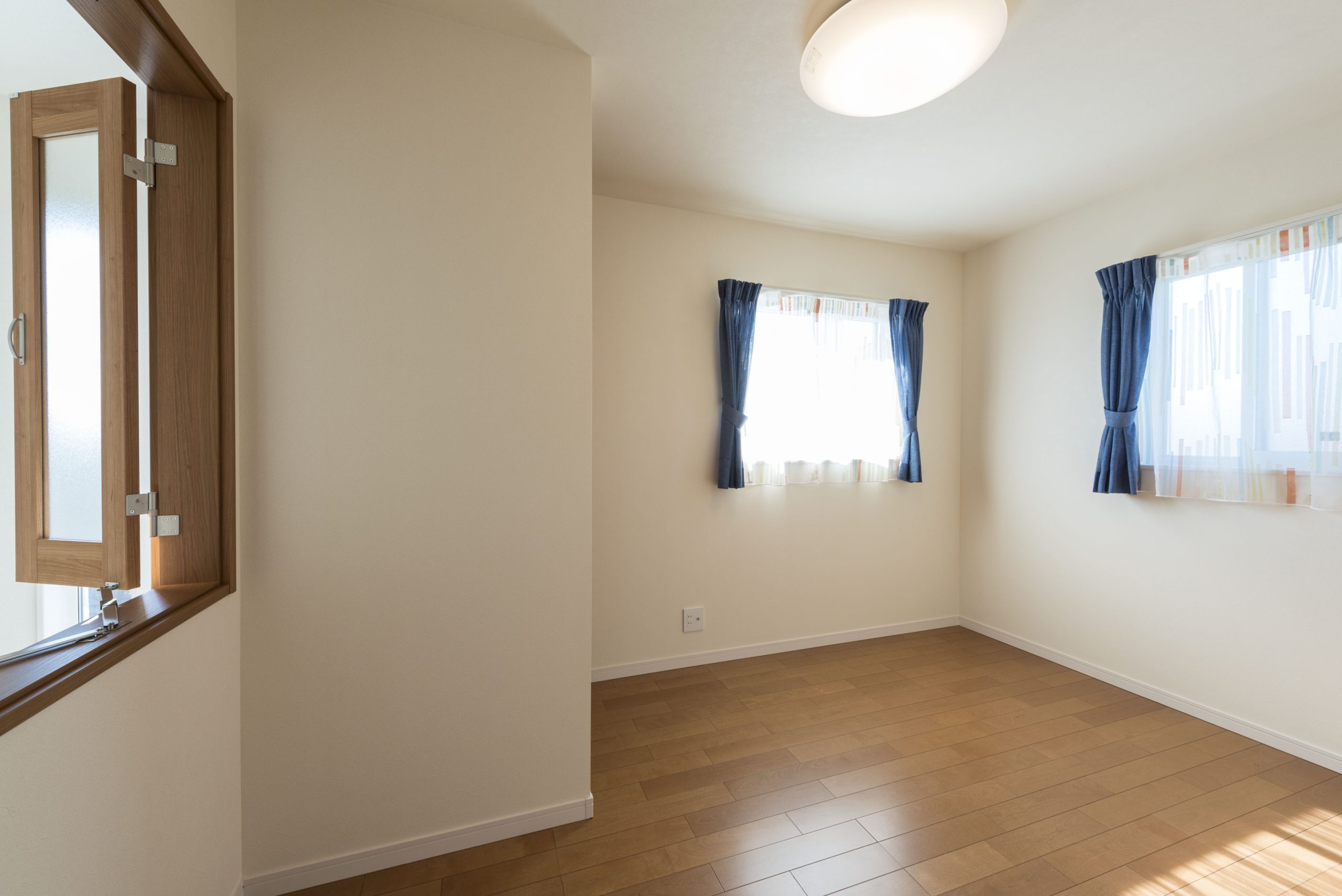 南面の吹抜けに面する2階の洋室には室内窓を設けました。