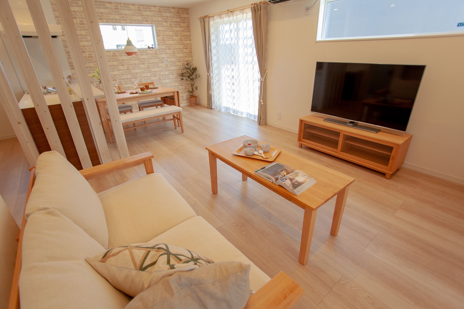 18.2帖のまとまったLDKの横には2.2帖の和室を配置し、お子様の遊び場や家事スペースを確保。