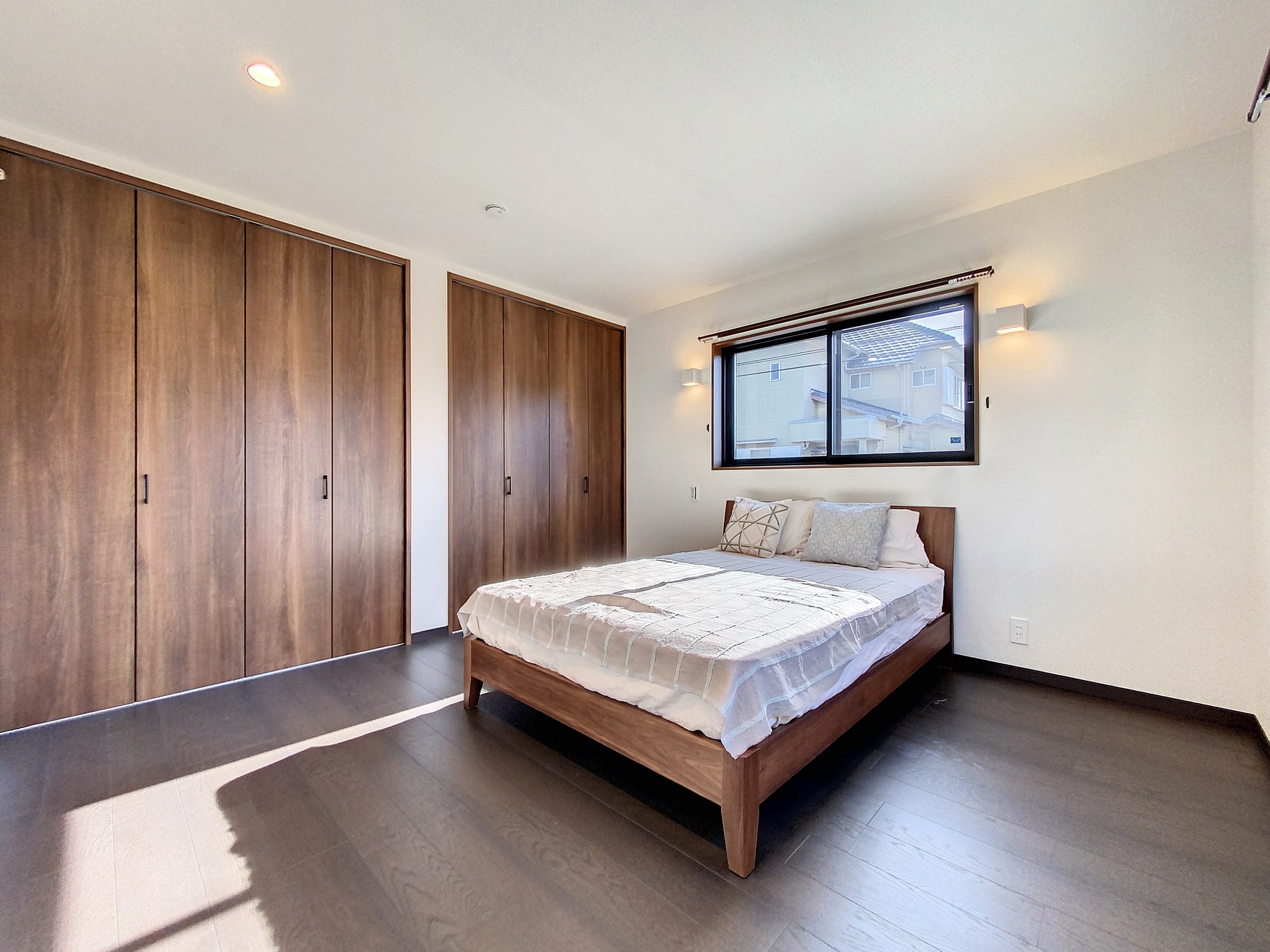 ダブルベッドを置いてもゆとりのある、主寝室。