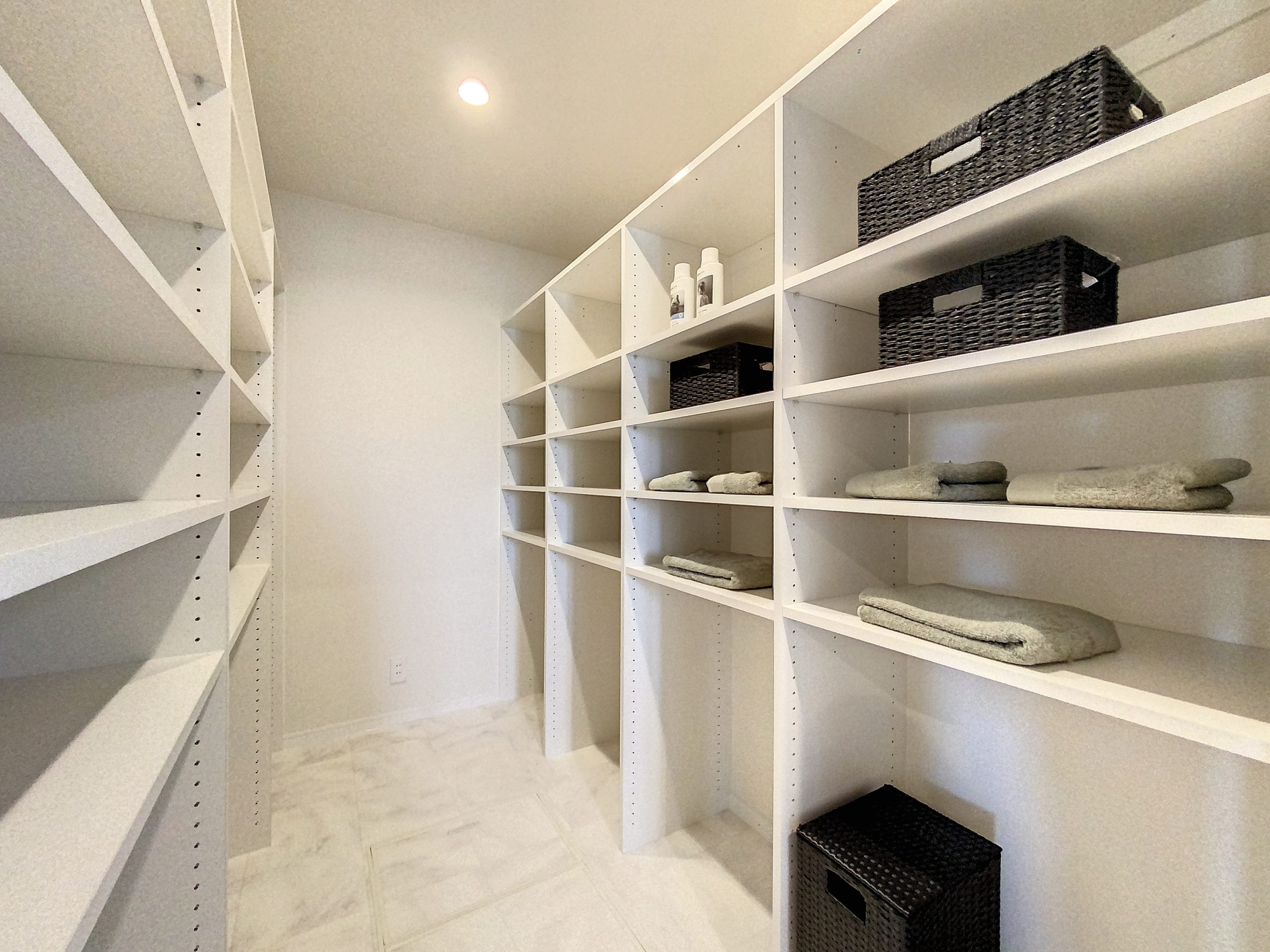 洗面室や各居室から近い場所にあるため、『しまう・着る』際の移動距離が短くて済みます。