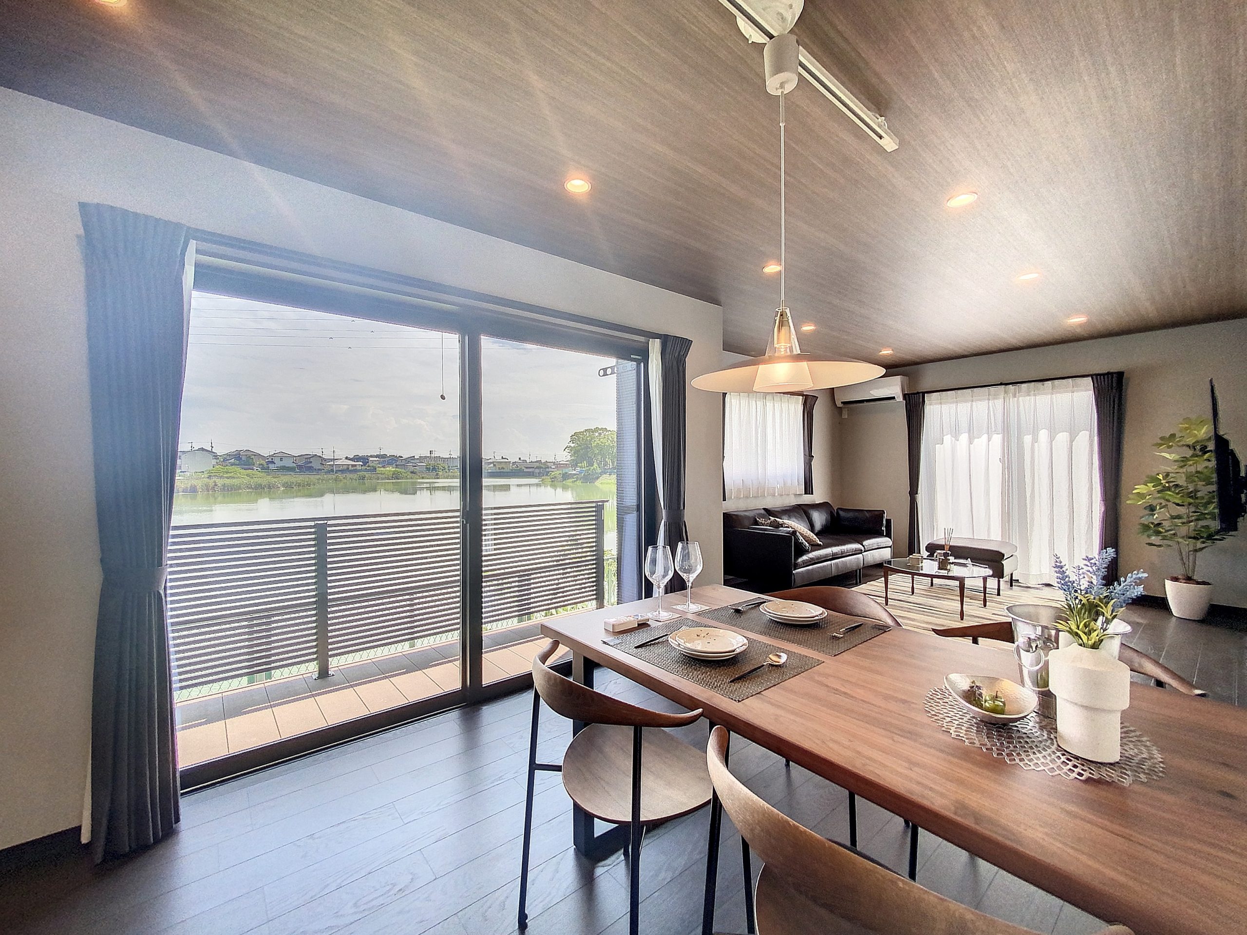 大きな窓が池に面しており、外からの視線を気にせず、自然を感じられます。