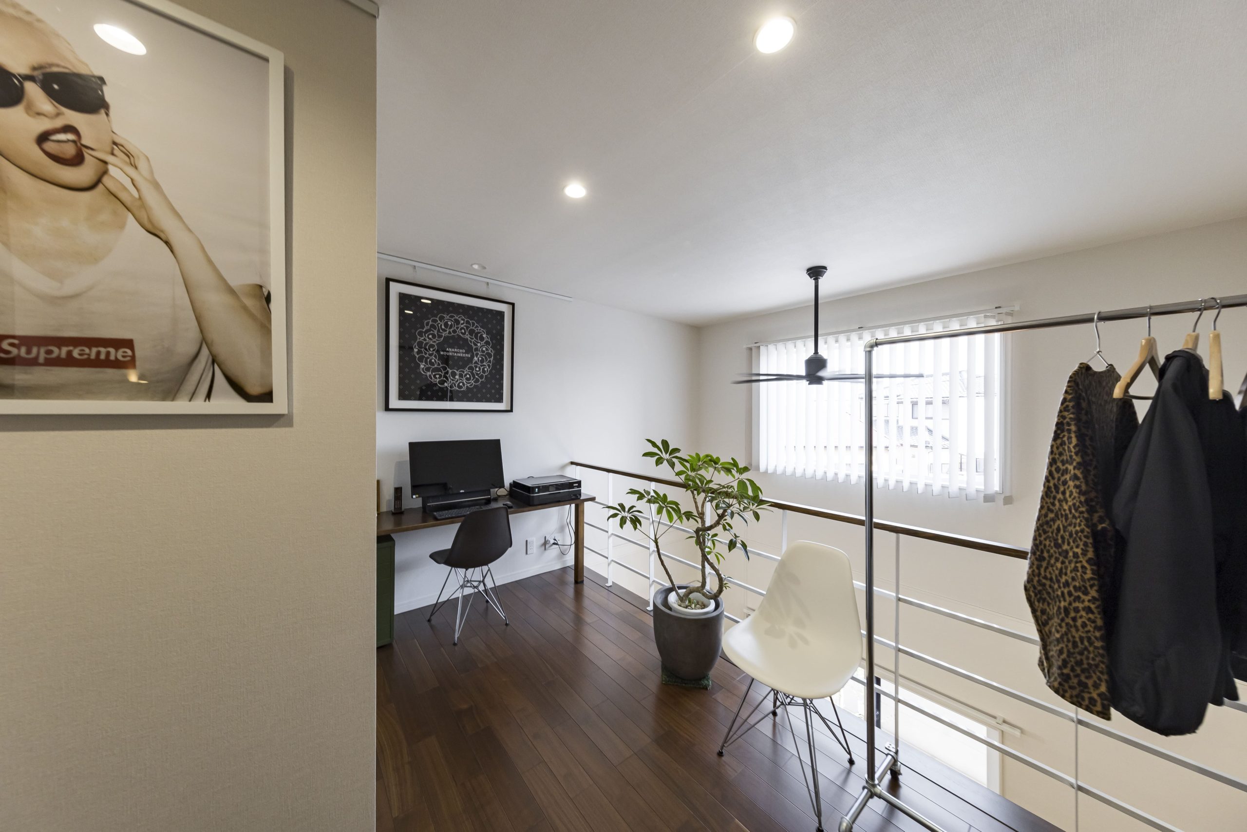 吹き抜けに面した開放的なワークスペース。